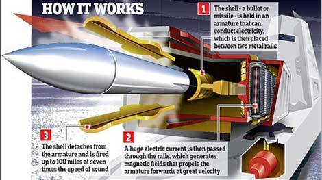 Sơ đồ mô phỏng hoạt động của siêu súng điện từ. Ảnh: Daily Mail.