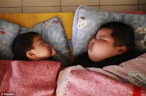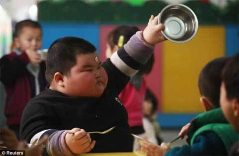 cùng tuổi, có thể ăn ba bát tô cơm vào bữa tối. Bé Lu Hao hiện nặng 60,8kg.
