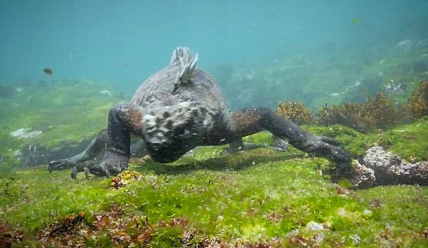 Theo các chuyên gia, bất chấp vẻ ngoài dữ tợn, cự đà biển thực tế lại là động vật "ăn chay". Loài thằn lằn khổng lồ này là các chuyên gia kiếm mồi dưới nước và thức ăn khoái khẩu của chúng là tảo. Chúng có khả năng lặn sâu tới 9 mét so với mặt nước biển.