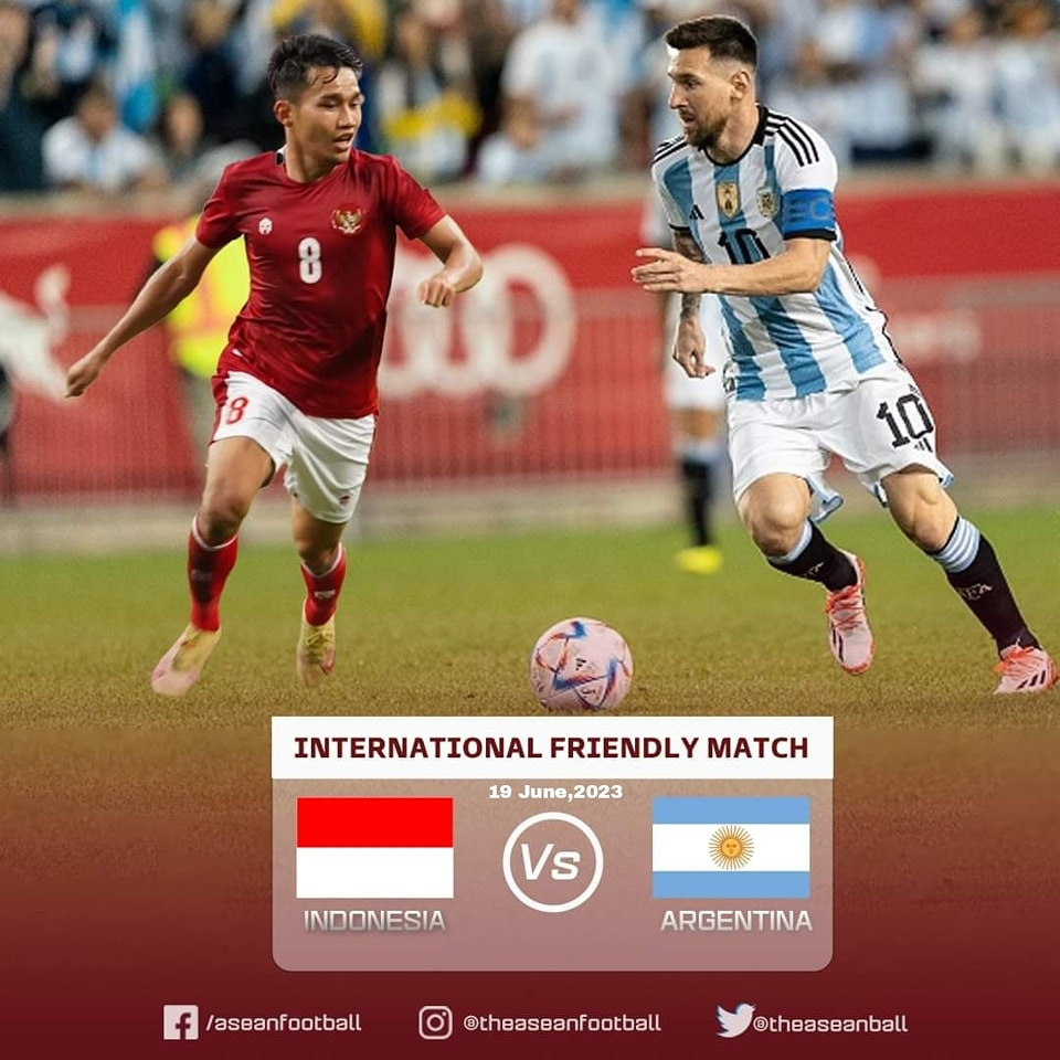Trận giao hữu quốc tế giữa ĐT Indonesia và ĐT Argentina diễn ra vào lúc 19h30 ngày 19/6 trên sân Gelora Bung Karno, Jakarta.