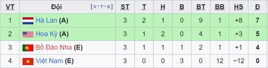 Bảng xếp hạng World Cup nữ 2023 mới nhất