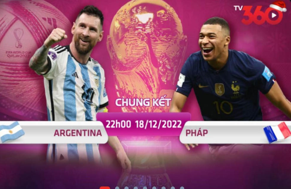 Hôm nay (18/12), trận chung kết World Cup 2022 giữa Argentina và Pháp sẽ diễn ra vào lúc 22h00 theo giờ Việt Nam. Người hâm mộ bóng đá Việt Nam có thể xem trực tiếp trận đấu này trên VTV2 và VTV2 Cần Thơ.