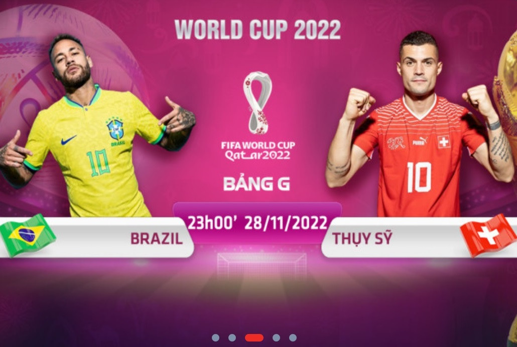 Bên cạnh đó, người hâm mộ có thể xem trận đấu giữa Brazil và Thụy Sỹ với những ứng dụng di động của VTV News, VTV Go, VTV Giải trí, VTVcab ON, hay cả FPT Play, TV360, Clip TV...