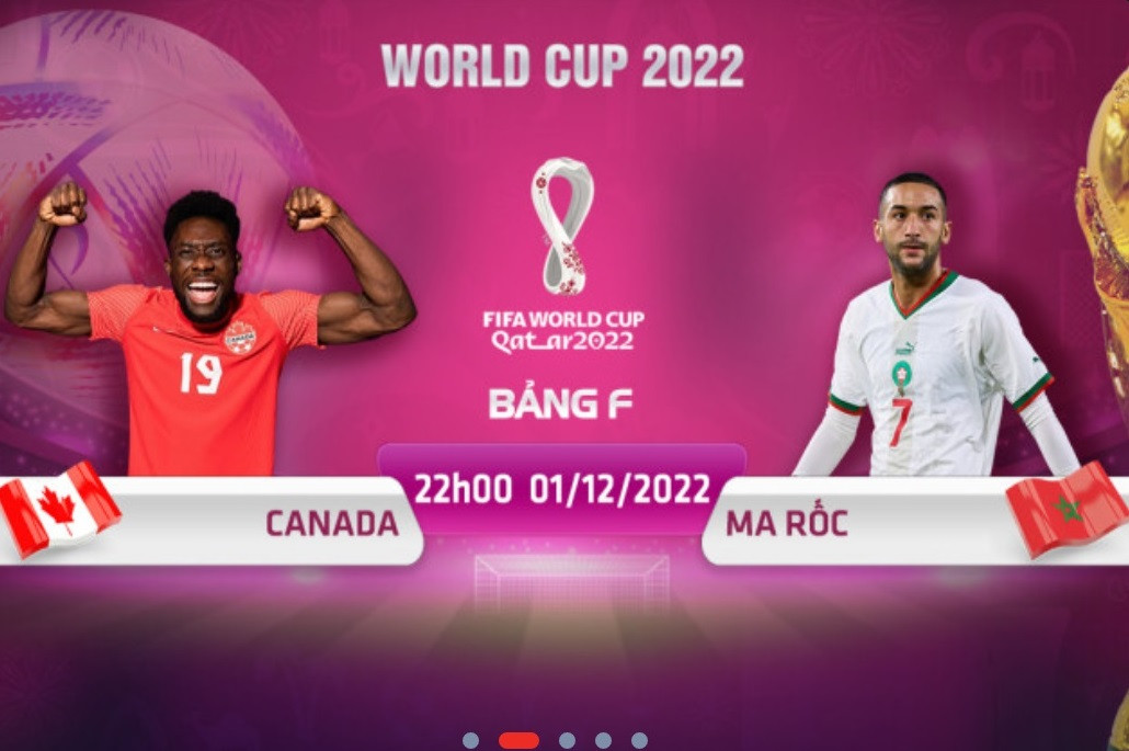 Hôm nay (1/12) lượt trận cuối của bảng F World Cup 2022 sẽ cùng diễn ra vào lúc 22h00 theo giờ Việt Nam, trong đó có trận đấu giữa Canada và Ma Rốc. Người hâm mộ bóng đá Việt Nam có thể xem trực tiếp trận đấu này trên VTV5.