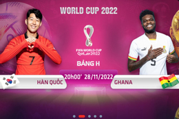 Hôm nay (28/11) trận đấu giữa Hàn Quốc và Ghana ở bảng H World Cup 2022 sẽ diễn ra vào lúc 20h00 theo giờ Việt Nam. Người hâm mộ bóng đá Việt Nam có thể xem trực tiếp trên VTV2 và VTV Cần Thơ.