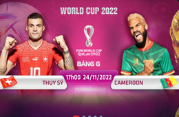 Hôm nay (24/11) trận đấu giữa Thụy Sỹ và Cameroon ở bảng G World Cup 2022 sẽ diễn ra vào lúc 17h00 theo giờ Việt Nam. Người hâm mộ bóng đá Việt Nam có thể xem trực tiếp trên VTV5 và VTV5 Tây Nam Bộ.