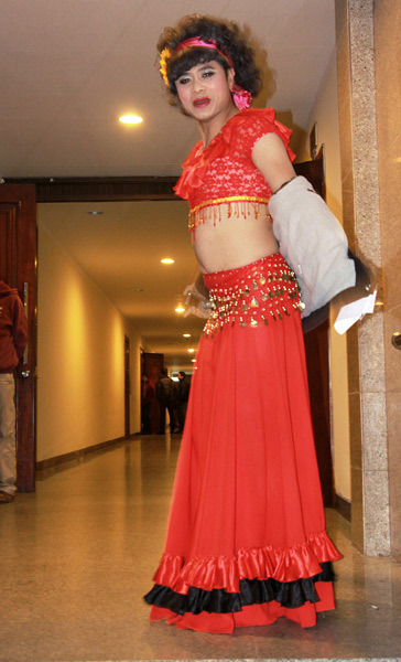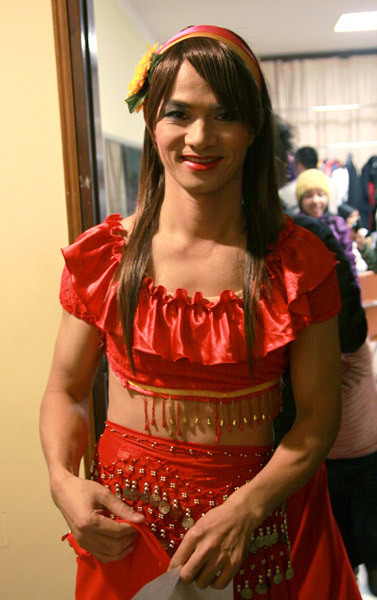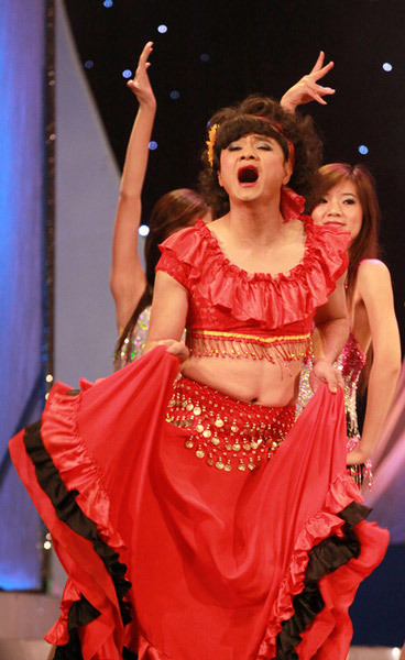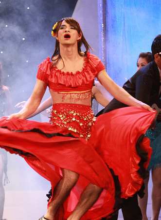 lộ rốn. Anh cười đùa bảo: "Phải hở như thế mới giống vũ nữ múa bụng,
