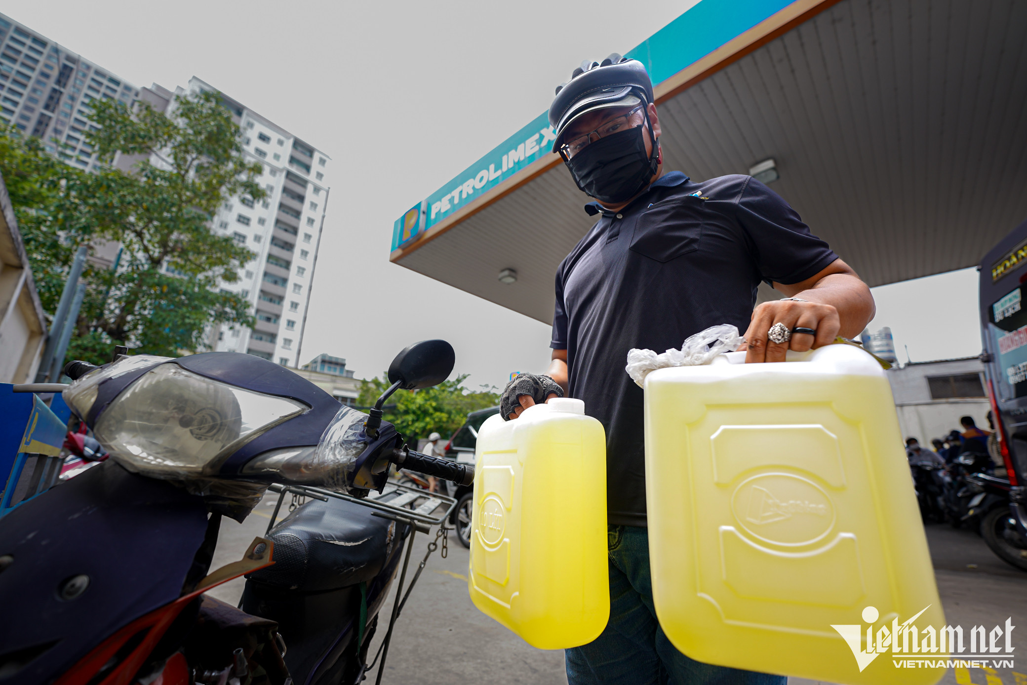 Tại cột xăng tự phục vụ, hàng dài hơn 10 chiếc ôtô nối đuôi nhau chờ tiếp nhiên liệu. Cửa hàng trưởng khẳng định: "Sẽ luôn đủ xăng để bán cho bà con, mong mọi người bình tĩnh, không tập trung quá đông, gây khó cho nhân viên làm việc".Anh Quốc Tuấn (sống tại quận 7) từ sáng đi tới hơn 10 trạm nhưng đều thấy treo biển hết xăng, tạm ngưng phục vụ. Anh phải đi hơn 6km để mua 2 can xăng về trữ. "Biết nguy hiểm, nhưng vì công việc giao hàng, cần nhiên liệu mỗi ngày. Hai can xăng có thể giúp tôi giải quyết vấn đề đi lại trong một tuần", anh Tuấn chia sẻ.Vào lúc 13h, khách đợi kín cửa hàng xăng dầu số 1 nằm ở góc đường Nguyễn Văn Cừ - An Dương Vương (quận 5). Nhiều người liên tục hối thúc các nhân viên bơm xăng vì sợ trễ giờ làm.Nhân viên trạm xăng liên tục kêu gọi khách thông cảm và bình tĩnh. "Từ sáng sớm tới giờ bán không kịp thở", một nhân viên than.Anh Quốc Huy, nhân viên cửa hàng xăng dầu cho biết, sẽ từ chối khách hàng đến mua bằng can, chai nhựa... để tránh tình trạng mua xăng tích trữ gây mất an toàn.