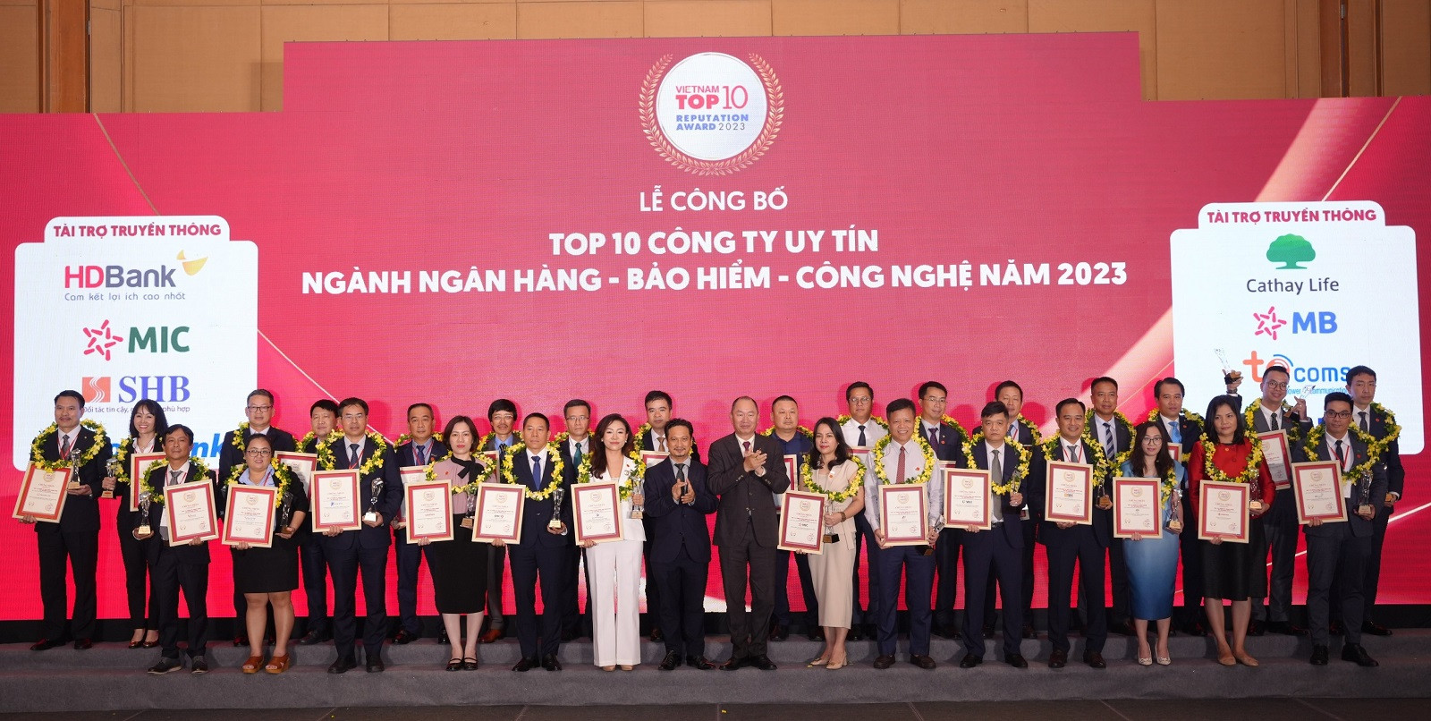 Top 10 Công ty uy tín ngành Ngân hàng - Bảo hiểm - Công nghệ là bảng xếp hạng thường niên được xây dựng dựa trên nghiên cứu và đánh giá độc lập của Vietnam Report, được định kì công bố thường niên trên Báo VietNamNet.
