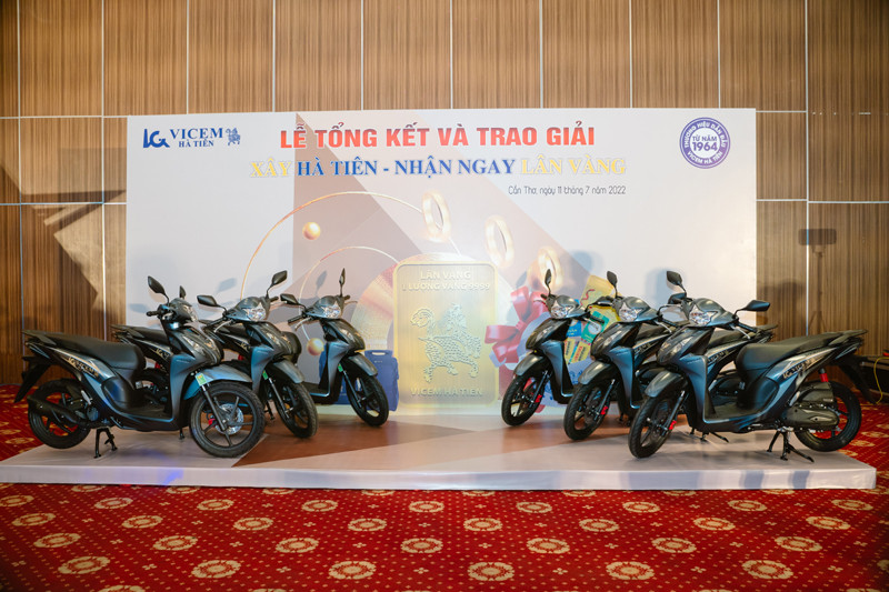 Kết thúc chương trình, Vicem Hà Tiên đã trao 6 giải nhất là xe Vision phiên bản cá tính và 3 giải đặc biệt là 1 lượng vàng SJC cho các khách hàng may mắn trúng giải.