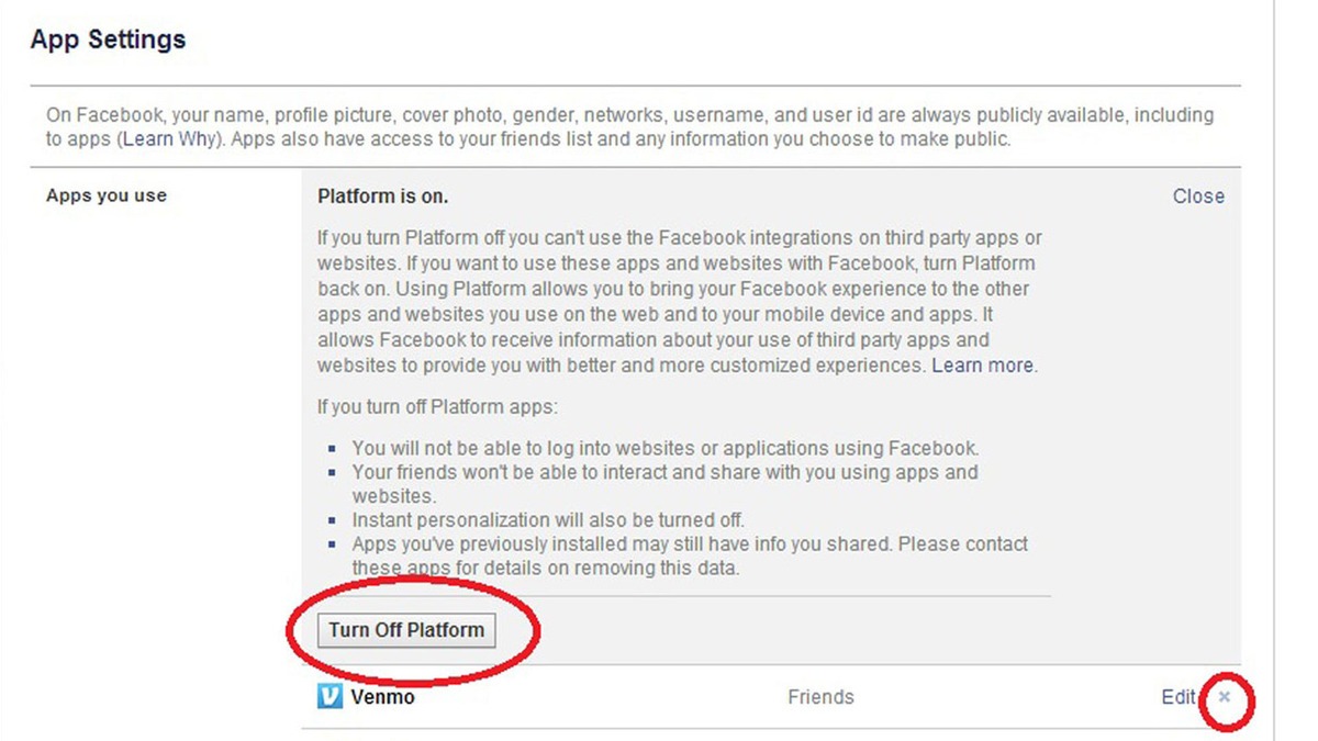 Để kiểm tra ứng dụng liên kết với Facebook, bấm vào mũi tên sổ xuống ở góc trên bên phải Facebok, chọn Settings (Thiết lập) > Apps (Ứng dụng) (cột tay trái). Bấm vào nút Edit (Chỉnh sửa) để xem ứng dụng xem được những gì của bạn và có quyền hạn gì. Nếu muốn xóa, bấm vào dấu “x”, đánh dấu vào ô Delete all activity on Facebook (Xóa tất cả hoạt động trên Facebook) (nếu có) rồi chọn Remove (Xóa).