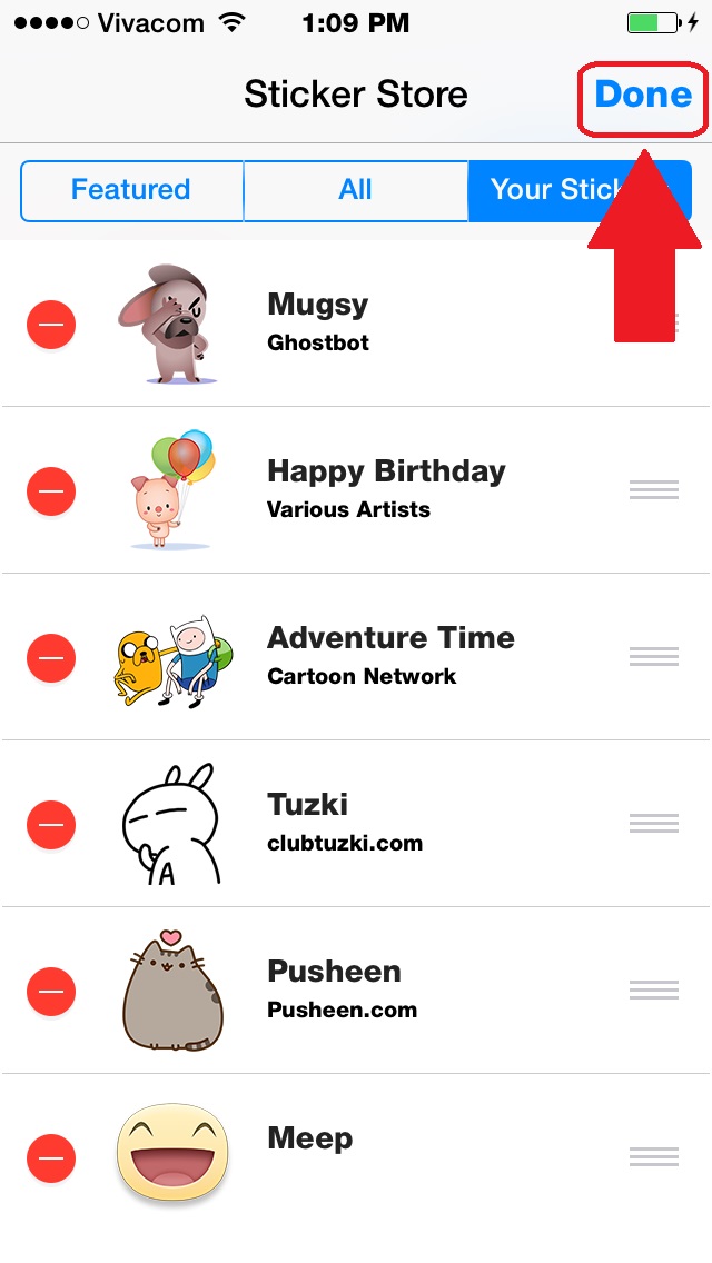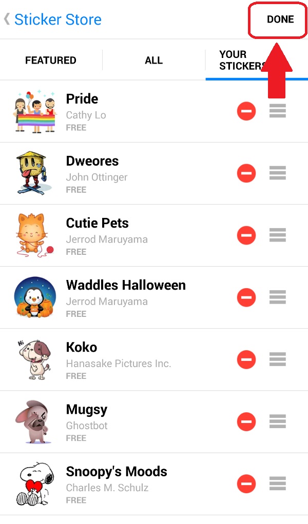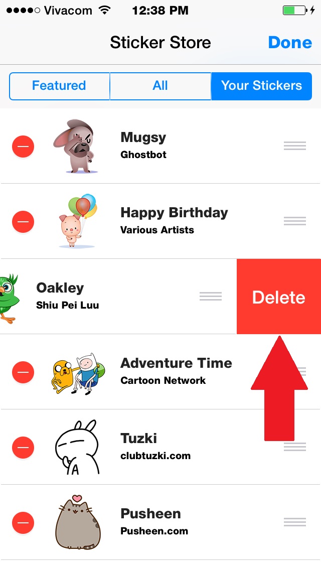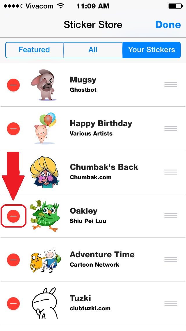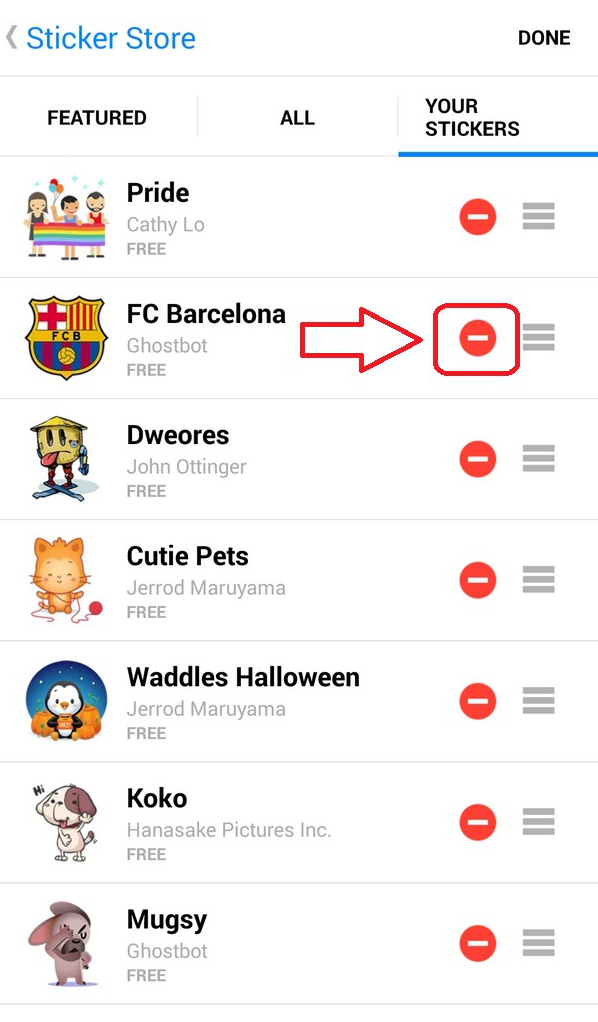 5. Chọn biểu tượng biển màu đỏ để xóa bộ sticker.