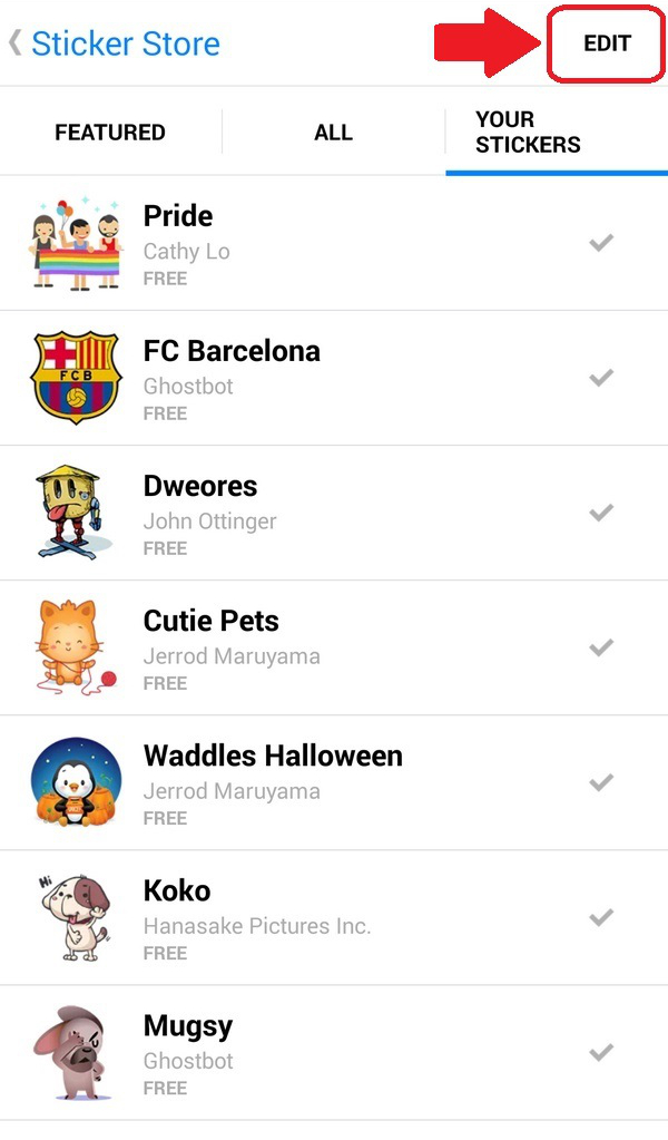 4. Chọn Edit ở ngay phía trên Your Stickers.