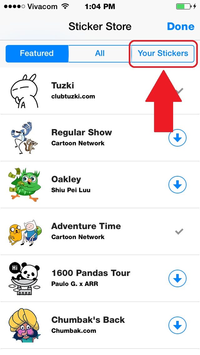 4. Chọn tab Your Stickers.