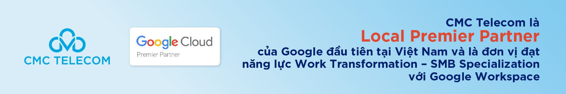 Cùng với sự hỗ trợ của Google và sự đồng hành của CMC Telecom, quá trình chuyển đổi của doanh nghiệp sẽ dễ dàng và an toàn hơn. Với năng lực và kinh nghiệm triển khai đã được thẩm định bởi Google, CMC Telecom đảm bảo cho các tổ chức, doanh nghiệp giải quyết các vấn đề kỹ thuật phát sinh, đồng thời cung cấp cho họ các giải pháp tối ưu nhất, phù hợp với nhu cầu dịch chuyển của từng đơn vị.