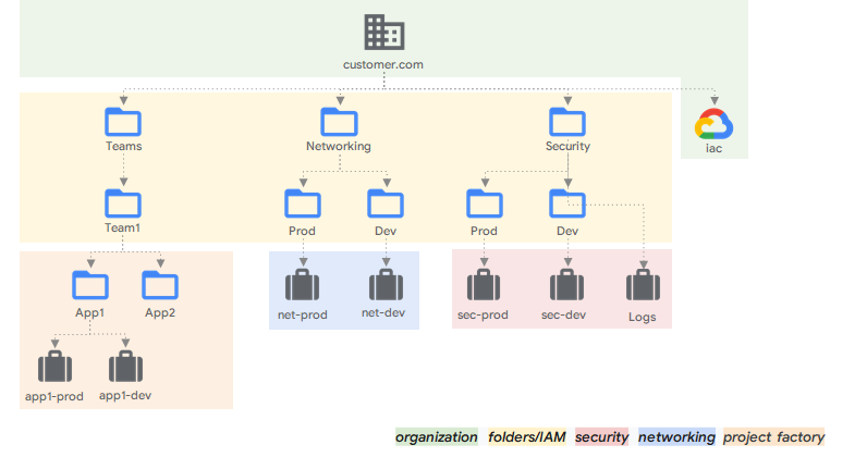 Sử dụng Landing Zone để tạo ra một mô hình quản lý hạ tầng đám mây cho phép doanh nghiệp xây dựng môi trường an toàn, hiệu quả để tiến hành quá trình chuyển đổi. Landing Zone cung cấp hệ thống quản lý tài nguyên chung, giúp đơn giản hóa việc quản lý các tài nguyên đám mây và giảm thiểu rủi ro. Nó bao gồm các chuẩn mực, quy trình và công cụ để hỗ trợ việc triển khai tài nguyên và xác định các quy định và hạn chế an toàn. Một số công cụ hỗ trợ tạo Landing Zone trên GCP bao gồm: Cloud Foundation Toolkit và Terraform.