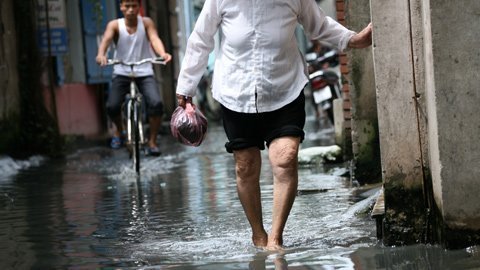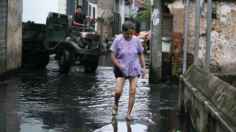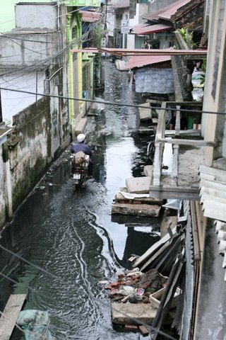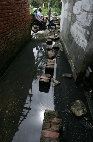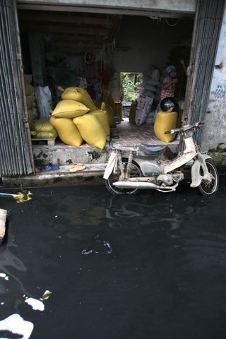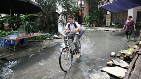 Dân làng cứ ra khỏi cửa nhà là phải lội trong thứ nước đúng nghĩa là nước cống.