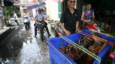 Một lượng lớn thịt chó được chế biến ngay tại đây hàng ngày vẫn cung cấp đều cho các quán nhậu ở Thủ Đô.
