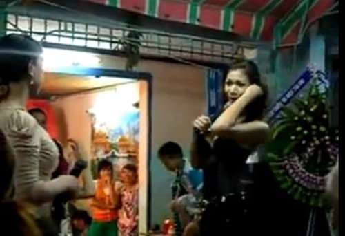 Clip đám tang với cảnh cô gái uốn éo đi lại: