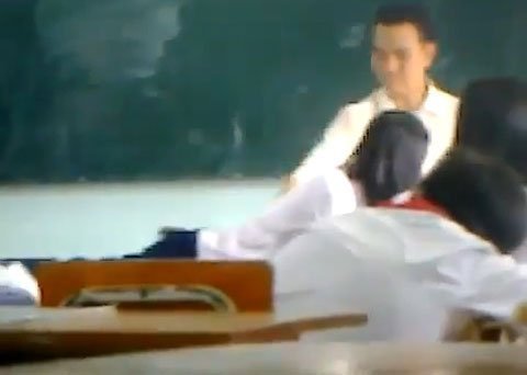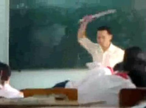 Từng em học sinh bước lên bục giảng, nằm xuống ngoan ngoãn để thầy giáo đánh vào mông. Những thước đánh mạnh của thầy giáo khiến học sinh phải nhăn nhó vì đau. Nhiều em còn hét lên “á”, “trời ơi” đầy đau đớn sau mỗi lần cây thước vụt xuống. Có học sinh còn phải chịu trận đến 5, 6 cây thước vụt xuống người.