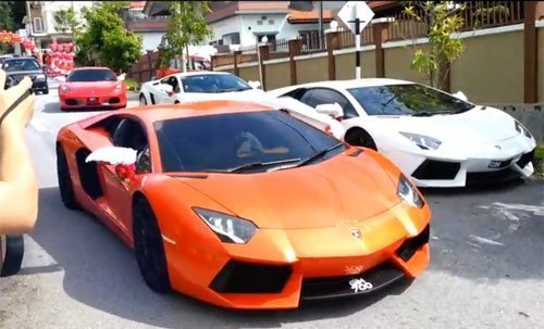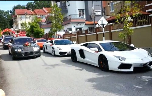 Giới truyền thông Malaysia không chỉ xôn xao về đám cưới của hai tay vợt cầu lông hàng đầu thế giới hiện nay là Lee Chong Wei và Wong Mew Choo, mà còn chứng kiến sự hiện diện của hàng chục những siêu xe đắt tiền như Rolls Royce, Bentley, Aventador, hay Ferrari.