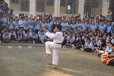 đá, chặt, chém, nhảy... của thầy giáo rất nhịp nhàng với âm điệu và nhịp phách