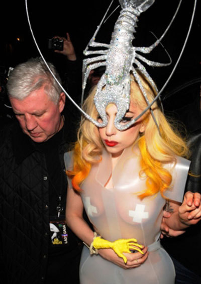 Lady Gaga cũng đã từng gây chú ý đặc biệt bằng một bộ đồ trong suốt (Ảnh: Daily Mail)