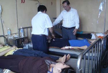 Lãnh đạo Sở Y tế Cần Thơ thăm hỏi các công nhân bị ngộ độc (Ảnh: CANDO) |