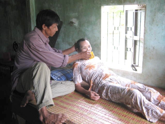 | Ông Trọng nuôi vợ bà Bích đang ốm nằm một chỗ không đứng dậy nổi. |