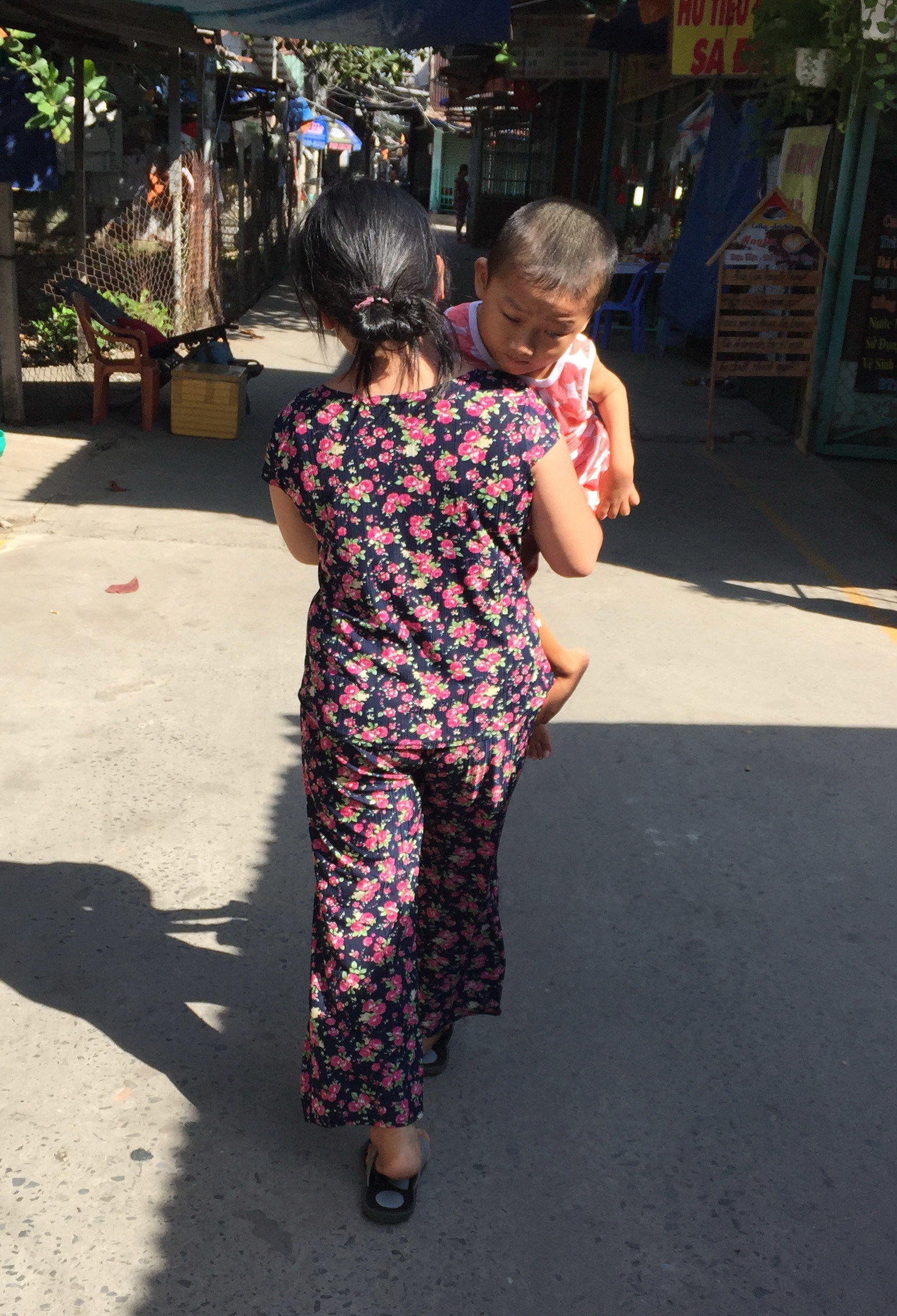 | Cậu bé Quí ngày ngày theo mẹ đi làm. |