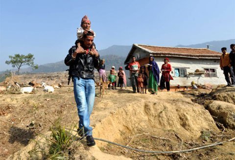 | Ông tự trèo lên thang vào nhà của mình ở làng Reemkholi thuộc hạt Dang, miền tây Nepal. |