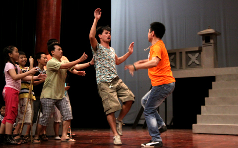 - Chuẩn bị cho vở kịch Truyền thuyết Ngọc Rồng phục vụ các em thiếu nhi ngày 1/6, Xuân Bắc, Tự Long, Thành Trung, Phú Đôn đang hàng ngày vật lộn múa võ hò hét...