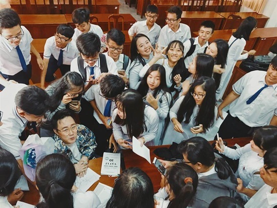 Ca sĩ Trung Quân vừa có buổi biểu diễn tại một trường học cấp 3. Anh hạnh phúc khi được rất nhiều các em học sinh ở đây đến xin chữ ký và chụp hình.