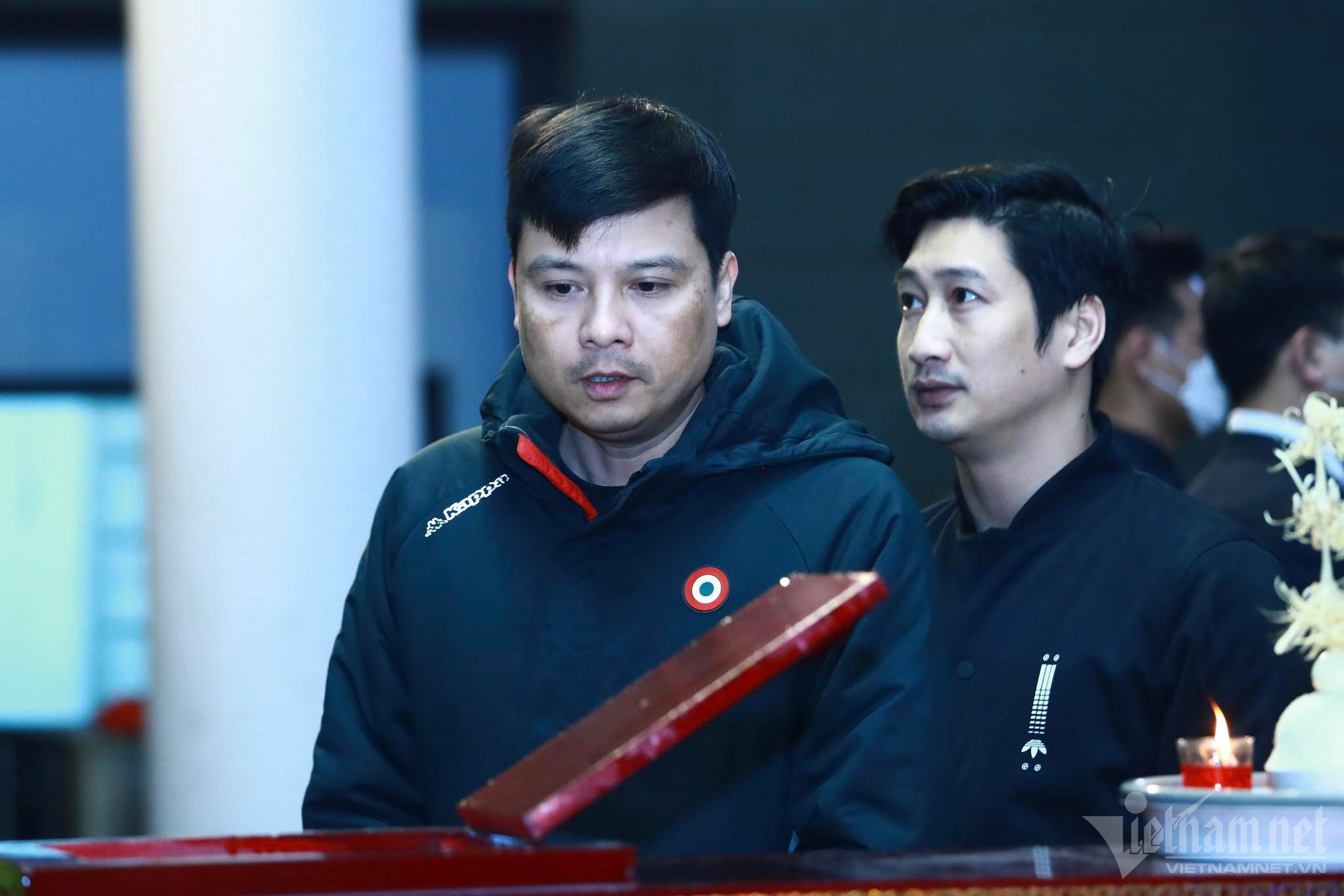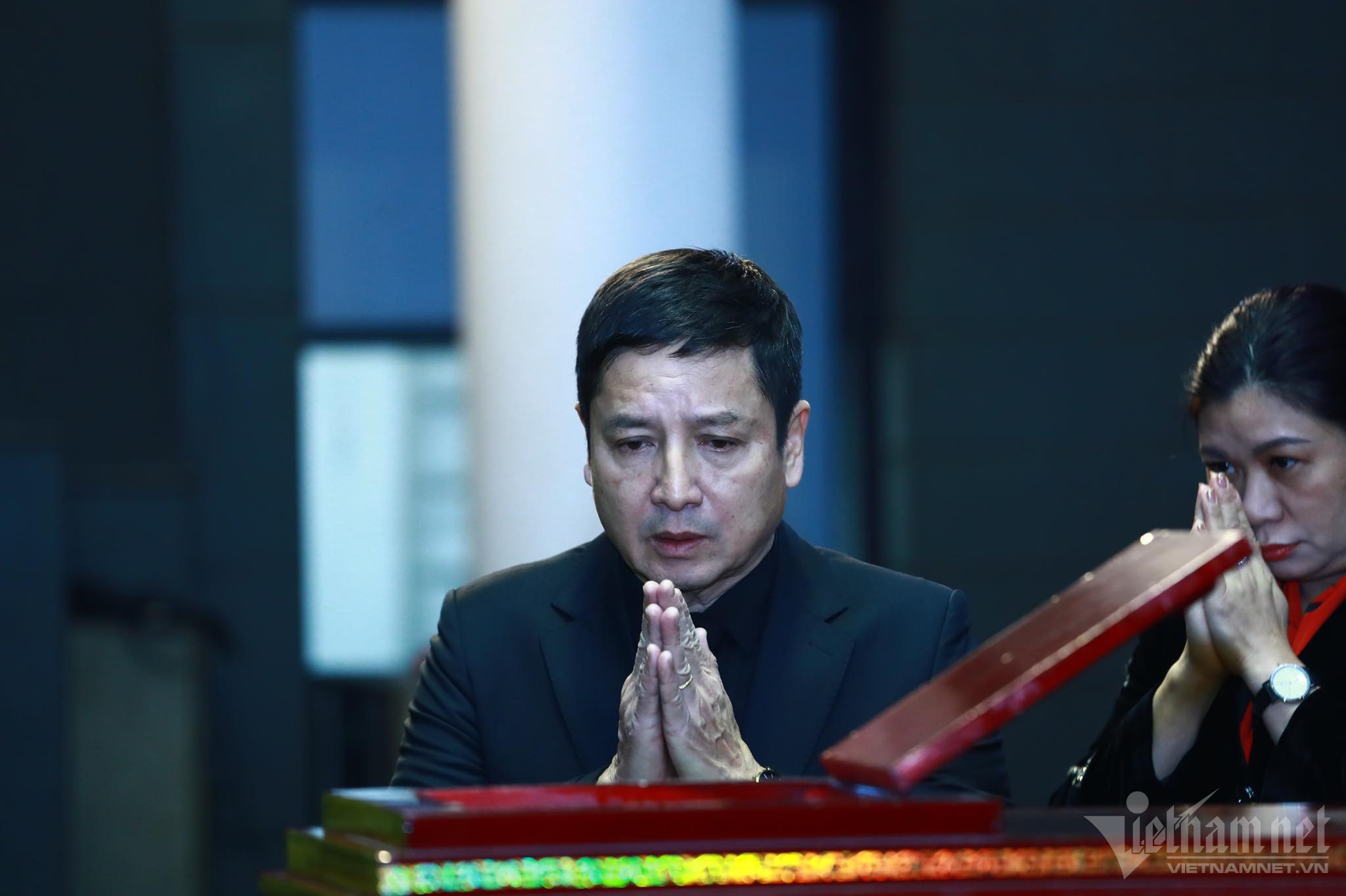 Diễn viên Quốc Tuấn, NSƯT Đức Khuê, Thiện Tùng, NSƯT Sĩ Tiến... bên linh cữu NSND Trần Tiến.