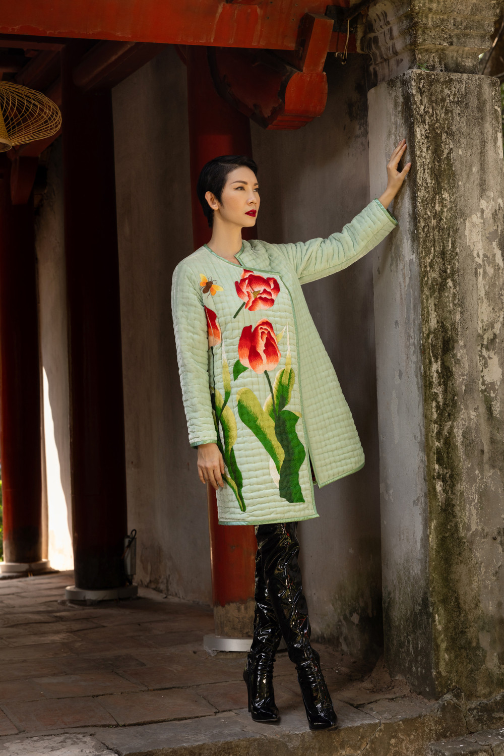 Là một siêu mẫu, cũng là đạo diễn của rất nhiều show diễn thời trang nên không khó để Xuân Lan thể hiện "xuất thần" tinh thần mà NTK muốn truyền tải qua những bộ trang phục. Với NTK Đức Hùng, mỗi chiếc áo chần bông là một tác phẩm độc nhất, bởi những chi tiết được làm rất tỉ mỉ trên thân áo.