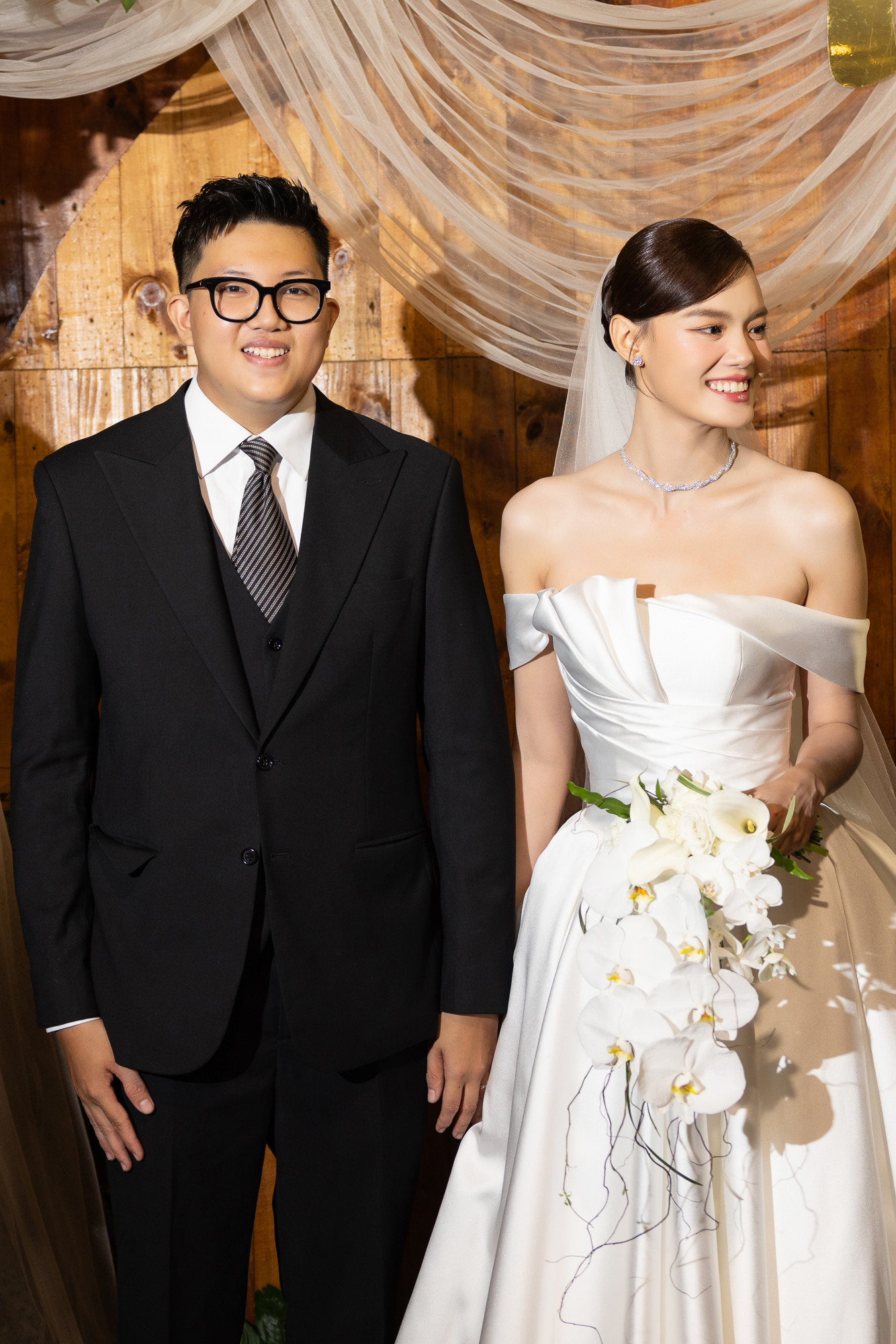 Trên trang cá nhân, Võ Hoàng Yến đăng tải hình ảnh mặc đầm đen bó sát, rạng rỡ đến chúc mừng học trò. Cô gửi lời chúc mừng: "Thật hạnh phúc khi nhìn cô học trò đáng yêu Lê Thanh Thảo nay đã tìm được bờ vai vững chãi của mình. Thời gian trôi thật nhanh, nhớ ngày xưa còn dẫn em qua chị học catwalk, bị la khóc quá trời mà bây giờ em lên xe bông trước rồi. Để chị bắt kịp em cái coi. Chúc hai em trăm năm hạnh phúc, cô dâu chú rể đẹp đôi quá chừng chừng. Mãi bên nhau hai em nhé".