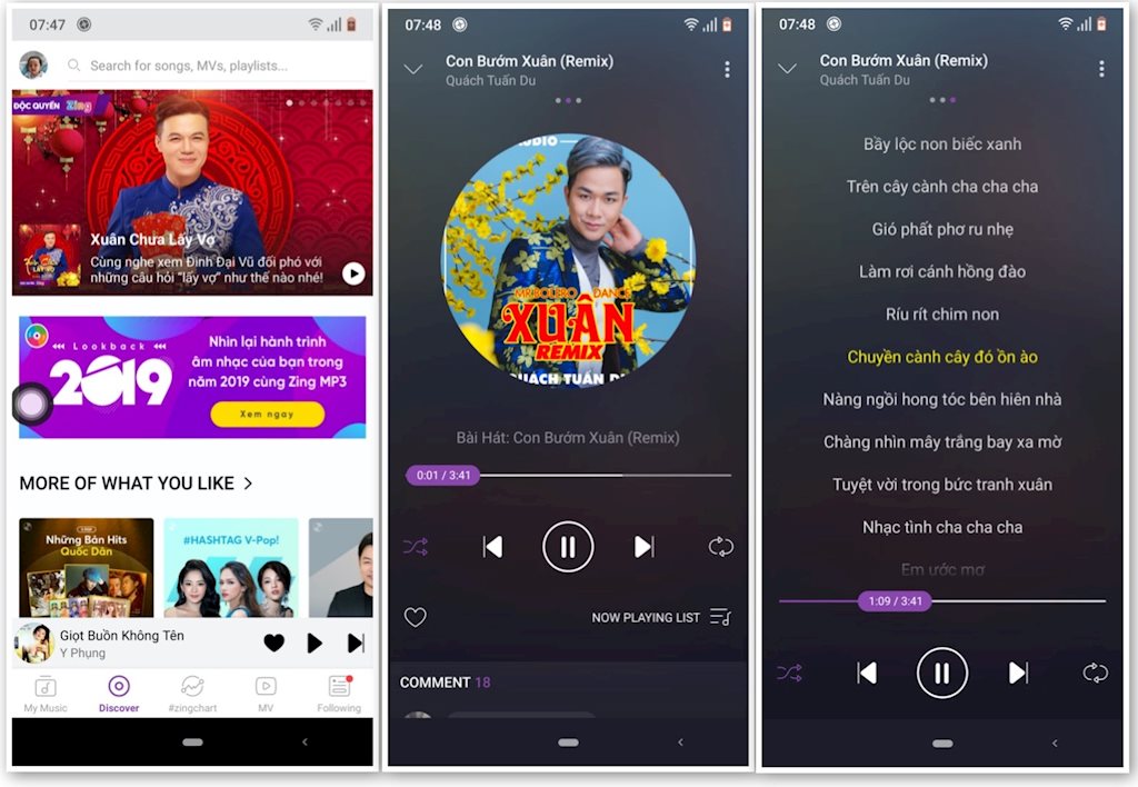 Là một trong những ứng dụng nghe nhạc phổ biến nhất trên smartphone tại Việt Nam - đặc biệt là điện thoại chạy nền tảng Android – Zing MP3 có nhiều lợi thế trước đối thủ quốc tế khi so kè ngay tại sân nhà bởi kho nhạc Việt phong phú cùng khả năng đăng nhập dễ dàng thông qua tài khoản Zalo. Ứng dụng nghe nhạc này hỗ trợ đa số nền tảng phổ biến hiện này gồm web, di động và TV.