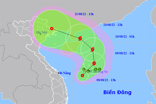 Đến 7h ngày 5/8, vị trí trung tâm vùng áp thấp ở khoảng 23,6 độ Vĩ Bắc; 111,9 độ Kinh Đông trên khu vực phía Tây tỉnh Quảng Đông (Trung Quốc). Sức gió mạnh nhất ở trung tâm vùng áp thấp giảm xuống dưới cấp 6 (<40km/giờ).