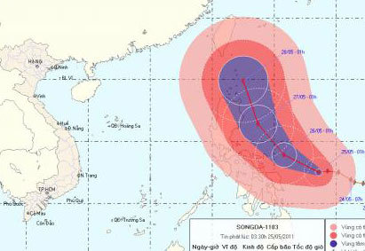 Trong khoảng 24 đến 48 giờ tiếp theo, bão di chuyển theo hướng Tây Bắc, mỗi giờ đi được khoảng 15 km. Đến 1 giờ ngày 27/5, vị trí tâm bão ở vào khoảng 16,4 độ Vĩ Bắc; 123,7 độ Kinh Đông. Cách đảo Lu-Dông (Philippin) khoảng 170km về phía Đông. Sức gió mạnh nhất vùng gần tâm bão mạnh cấp 12, cấp 13 (tức là từ 118 đến 149 km một giờ), giật cấp15, cấp 16.