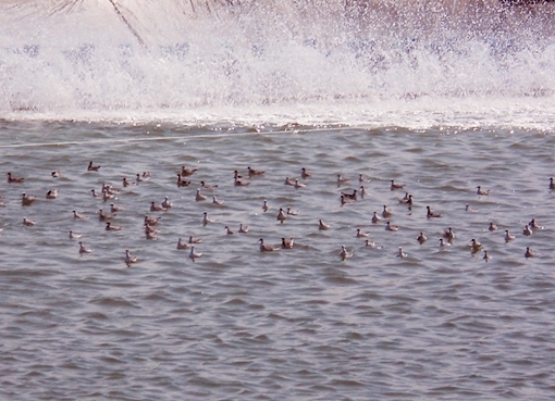 và Sơn Hải. Bị xua đuổi chúng chỉ bay sà sà mặt hồ, tranh thức ăn nuôi tôm làm