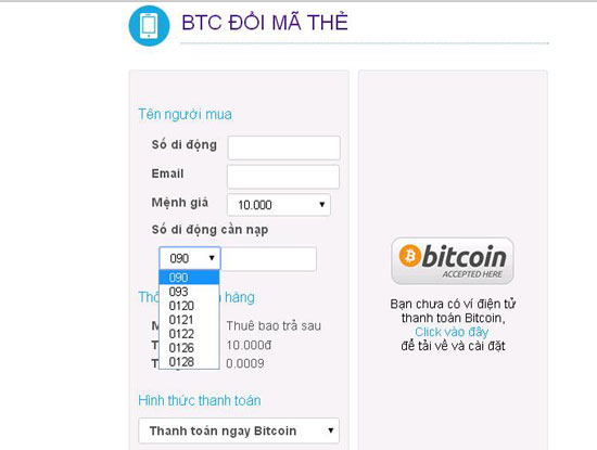Trang web nói trên được giới thiệu “là sản phẩm thử nghiệm của cộng đồng Bitcoin Vietnam”, cung cấp duy nhất dịch vụ đổi mã thẻ điện thoại bằng Bitcoin.