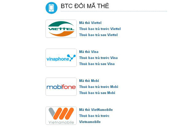 Hiện địa chỉ này cho phép nạp thẻ từ 4 doanh nghiệp viễn thông Viettel, VinaPhone, MobiFone và Vietnamobile với các loại mệnh giá đang được bán trên thị trường.