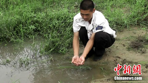 Anh Quách Chí Cường, người dân thành phố Trịnh Châu cho biết sáng ngày 10 tháng 8, trong lúc ra bờ sông Giả Lỗ tập quân sự, anh đã nhìn thấy loại sinh vật trông xa vừa giống tôm tép, vừa như nòng nọc. Tới gần và vớt lên bàn tay xem, anh Quách mới phát hiện sinh vật này khi ở dưới nước thì giống cá, quan sát kỹ thì lại thấy giống tôm.