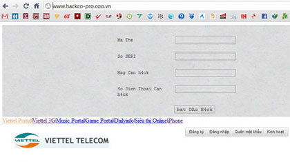 Cụ thể kẻ lừa đảo sẽ bảo người dùng truy cập trang web http://www.hackco-pro.coo.vn/ được quảng cáo là website của mạng di động đã bị hack.