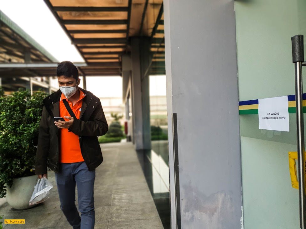 Một nhân viên FPT mang khẩu trang phòng dịch khi đi làm. Ảnh: Phan Nhật |