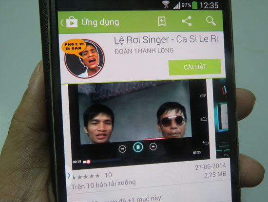Và ăn theo sức nóng của Lệ Rơi đang ngập trên mạng Internet và các mặt báo, từ ngày 27/6 tới nay, trên kho ứng dụng Google Play dành cho Android hay Windows Store dành cho hệ điều hành Windows Phone đã kịp xuất hiện một số ứng dụng liên quan đến anh chàng này.