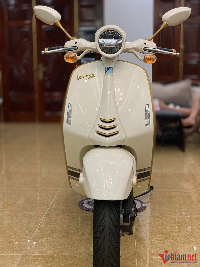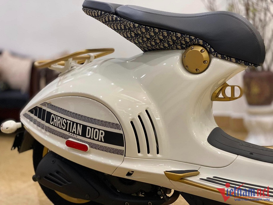 Trao đổi với VietNamNet, anh Tú cho biết: “Đây có thể là chiếc Vespa 946 Christian Dior 155 đầu tiên tại Việt Nam, là cực hiếm vì chỉ có 60 chiếc xuất xưởng trên thế giới. Model đời 2022 nhập nguyên thùng nên xe hiện vẫn "nguyên đai nguyên kiện" chưa đổ xăng”.