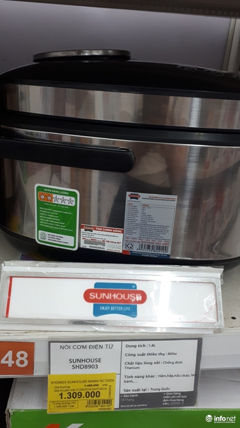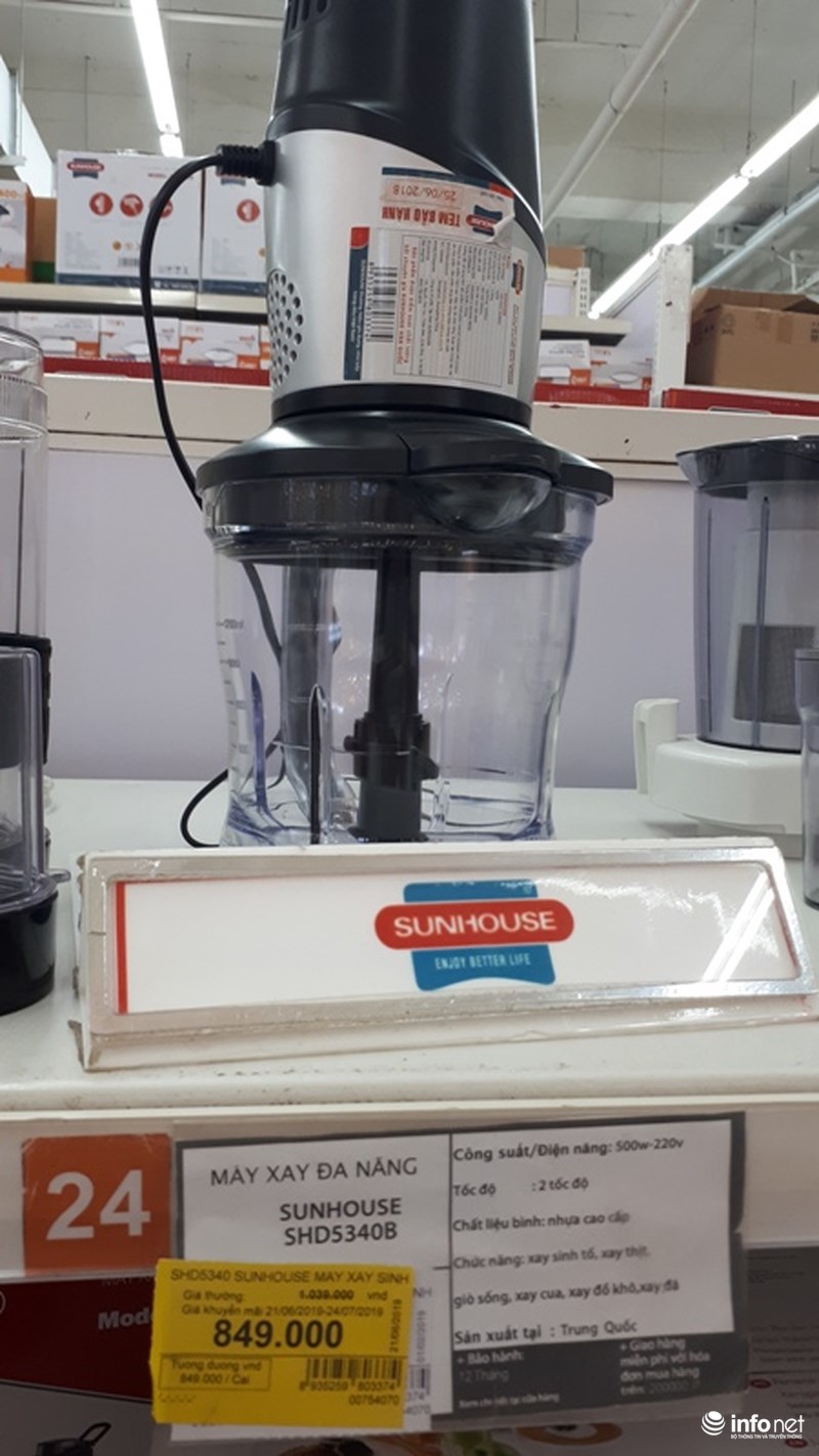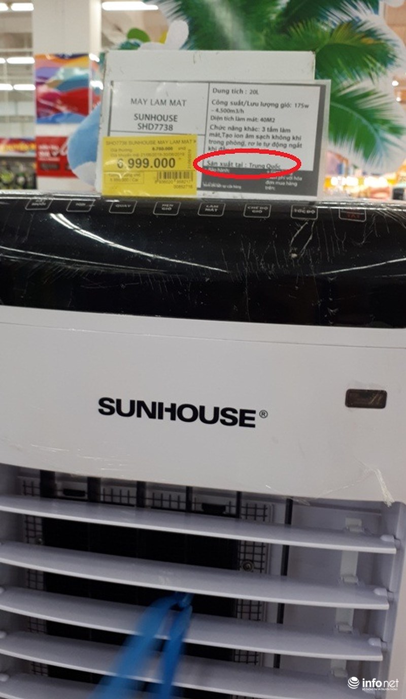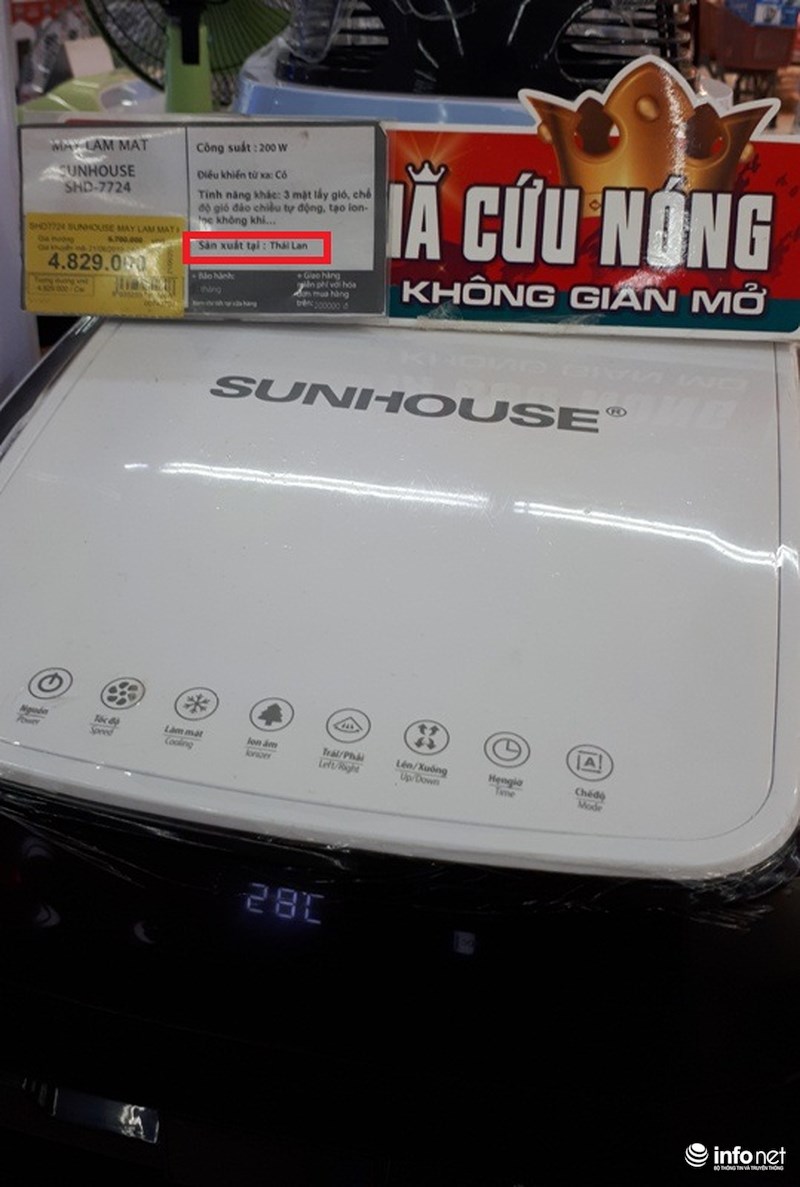 Theo khảo sát của PV Infonet, trên các siêu thị lớn ở Hà Nội, hàng loạt sản phẩm từ nồi cơm điện, máy làm mát không khí, máy xay sinh tố, ấm siêu tốc, bàn là hơi… của Sunhouse đều ghi xuất xứ từ các nước bên ngoài Việt Nam.
