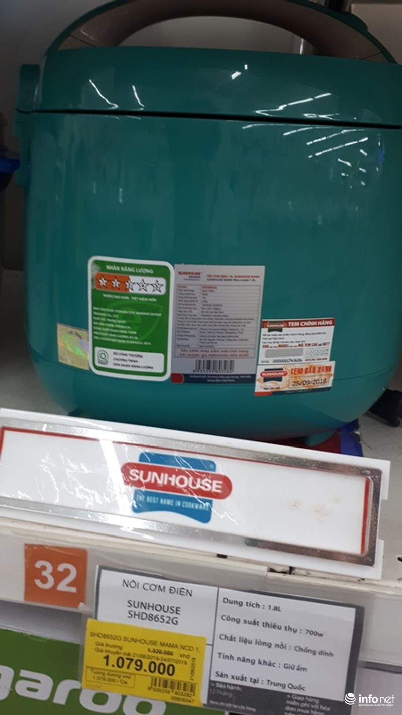 Những chiếc nồi cơm điện Sunhouse này đều ghi xuất từ Trung Quốc nhưng đều có thêm dòng chữ "Sản phẩm được kiểm soát chất lượng vởi chuyên gia Sunhouse Hàn Quốc".... Ảnh: Minh Thư