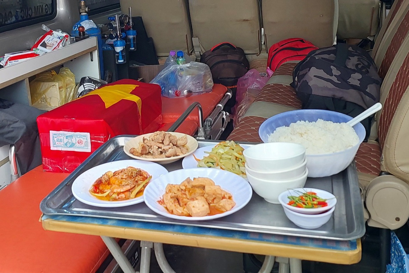 Sau khi thắp nén nhang cho liệt sĩ, tổ công tác ngỏ ý mời đoàn đưa hài cốt liệt sĩ về quê ăn bữa cơm trưa.